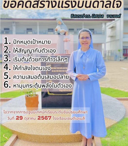 Orientation by the director ต้อนรับการเปิดภาคเรียนที่2/2567 ระดับชั้นมัธยมศึกษา โดยการปฐมนิเทศให้ข้อคิด และกำลังใจจากซิสเตอร์ ดร. นิศาชล งามวงค์ ผู้อำนวยการ พร้อมคณะครูทุกท่าน #บ้านหลังนี้อบอุ่นเสมอ…เซนต์เอเมลี